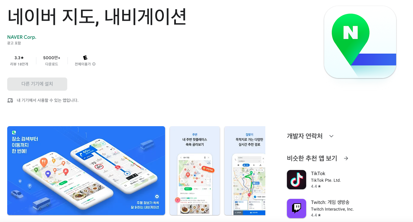 네이버 지도를 깔아줍니다.