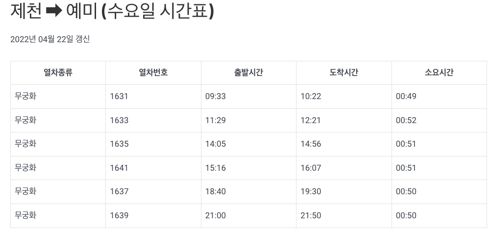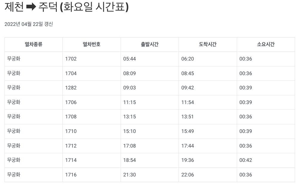 제천역 시간표는 위 페이지에서 조회 가능합니다.
