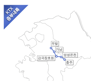 KTX 중부내륙선 노선도 부발역 KTX 시간표가남역 KTX 시간표감곡장호원역 KTX 시간표앙성온천역 KTX 시간표충주역 KTX 시간표