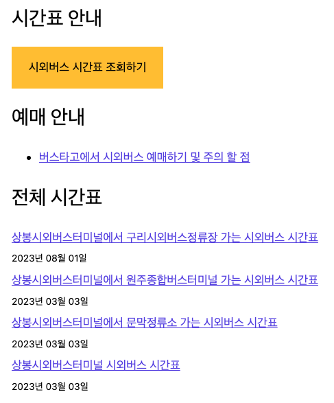 2023년 03월 03일 상봉시외버스터미널 시간표, 예매, 전화번호 안내입니다.