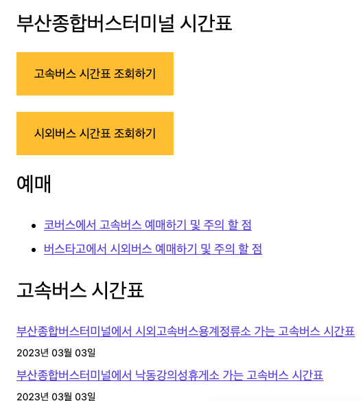 노포동시외버스터미널 시간표 조회하기