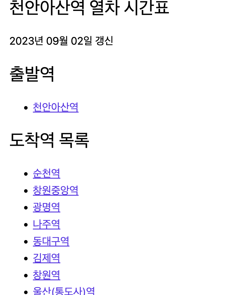 | 용산역ktx열차 시간표 (0) | 2023.08.21 |