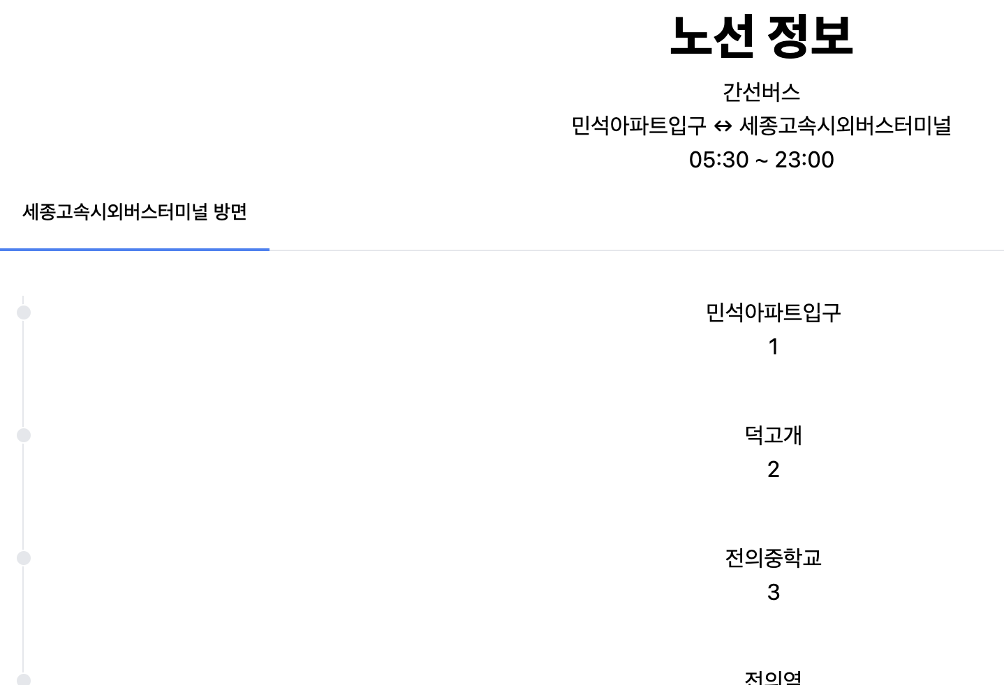 첫차, 막차와 기점, 종점 등을 안내합니다