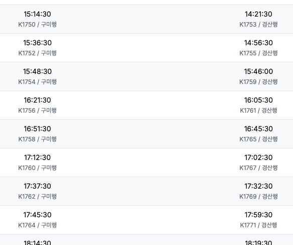 왜관역 대경선 시간표는 위 페이지 참고 바랍니다.