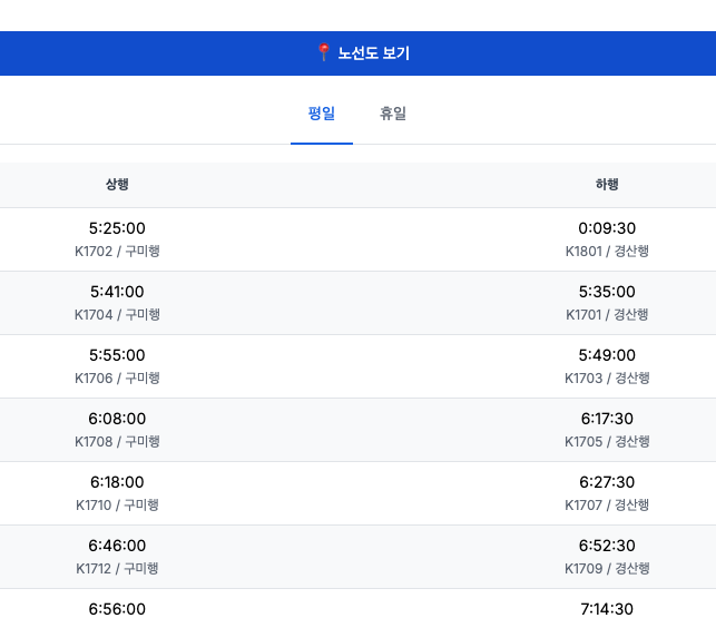 | 사곡역 대경선 시간표 조회 - 평일 주말 첫차 막차 (0) | 2025.06.12 |